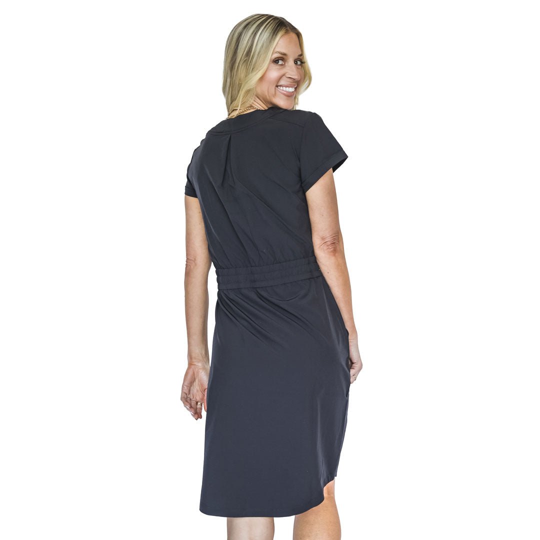 Effortlessly stylish and comfortable, The Day Trip Dress is made with a functional drawstring and pockets, perfect for your travels. The stretchy fabric ensures all-day comfort while the convenient side and zipper pockets keep your essentials safe. A must-have for any adventure seeker!