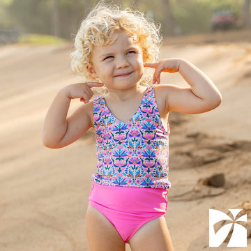 Soft, secure styles built for splashing, running, and repeat cannonballs. Pair her favorite Tropic Edit print with mom’s matching suit for the cutest family set.