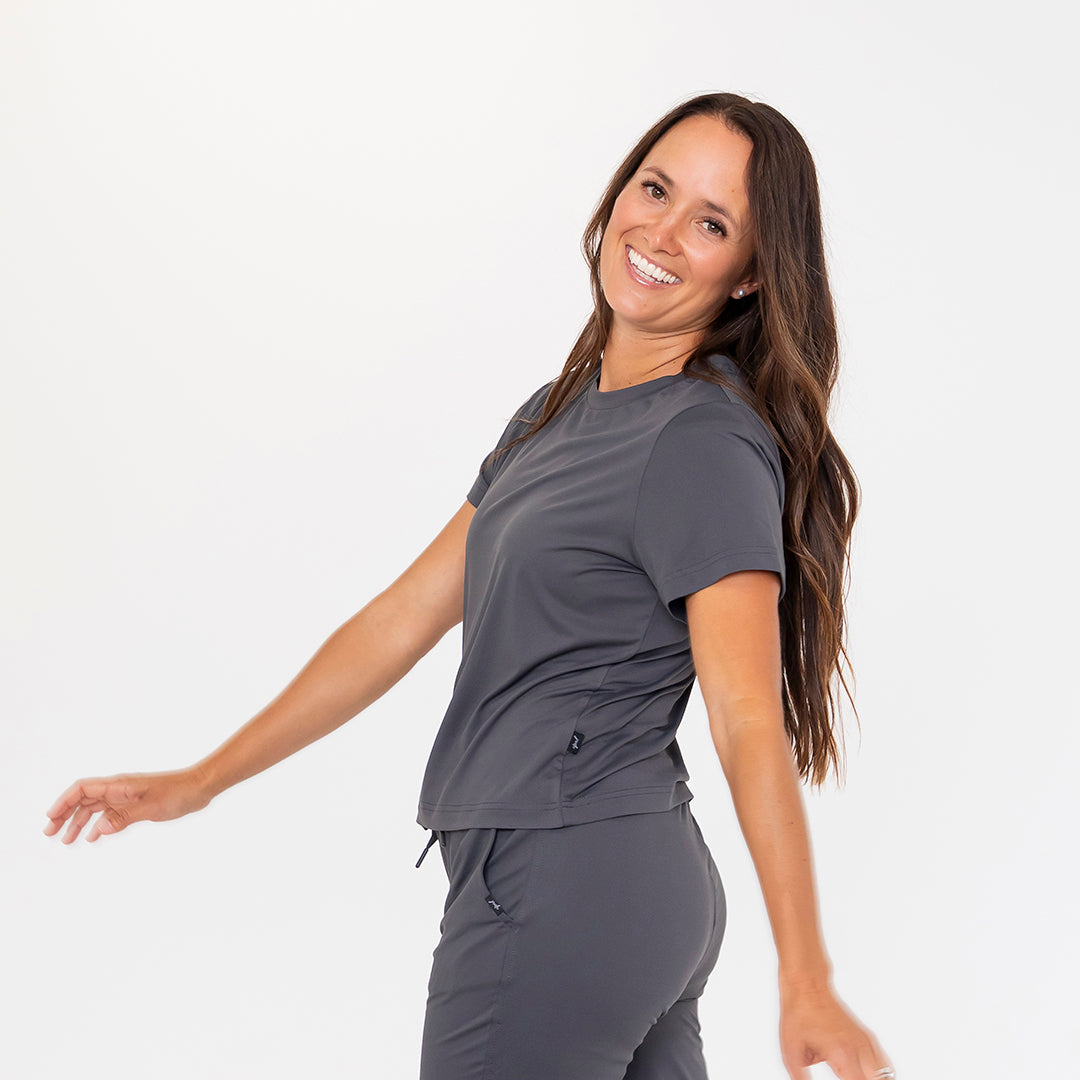 This buttery-soft boxy crop top is your new everyday essential! Designed with a relaxed fit and made from a smooth polyester-spandex blend, it pairs effortlessly with our matching straight-leg pants for a chic, put-together look.
