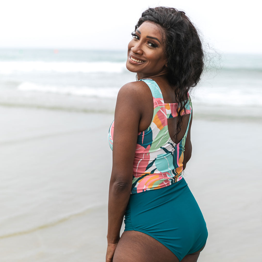 Look no further for the perfect tankini top! Our V Neck Tankini Top features a sports-bra-like fit for amazing support, comfortable fabric, and removable pads for extra give—all with a chic v neckline. Dive in and enjoy warm summer days with confidence!