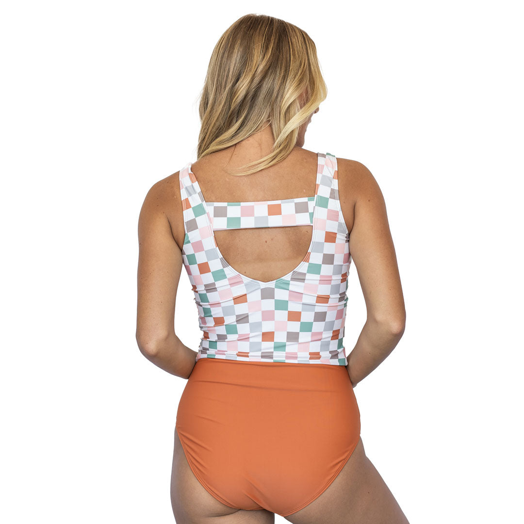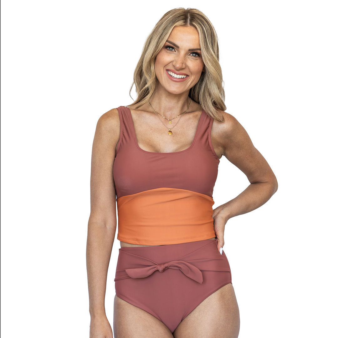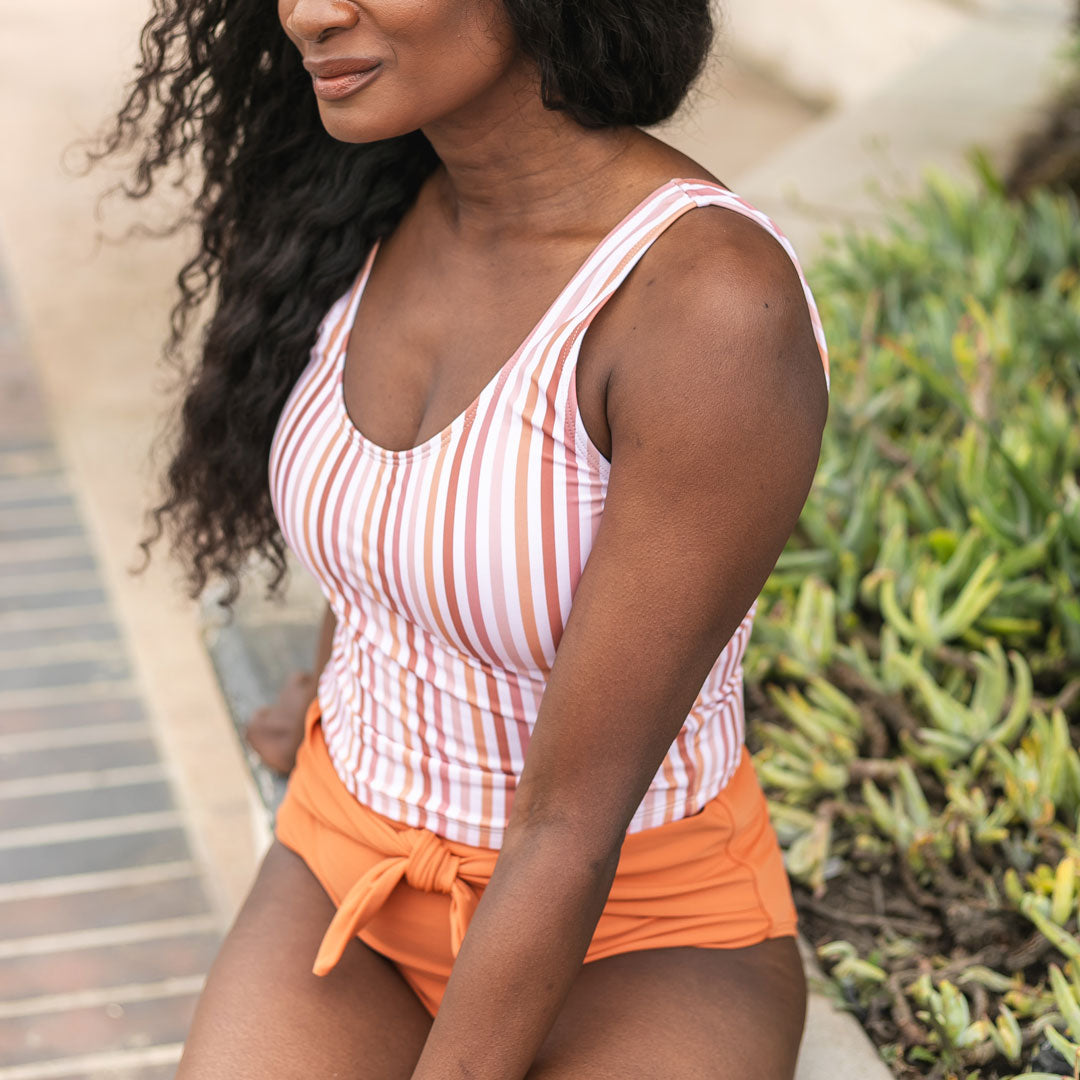 These swim bottoms feature a flattering waist tie detail and higher-cut front leg holes, enhancing your silhouette with a modern touch. The seamless front leg holes and waistband ensure a smooth, irritation-free fit, while moderate to full bum coverage offers the perfect balance between modesty and style. Fully lined for durability and confidence, these bottoms are available in a variety of colors and patterns to suit your personal taste.