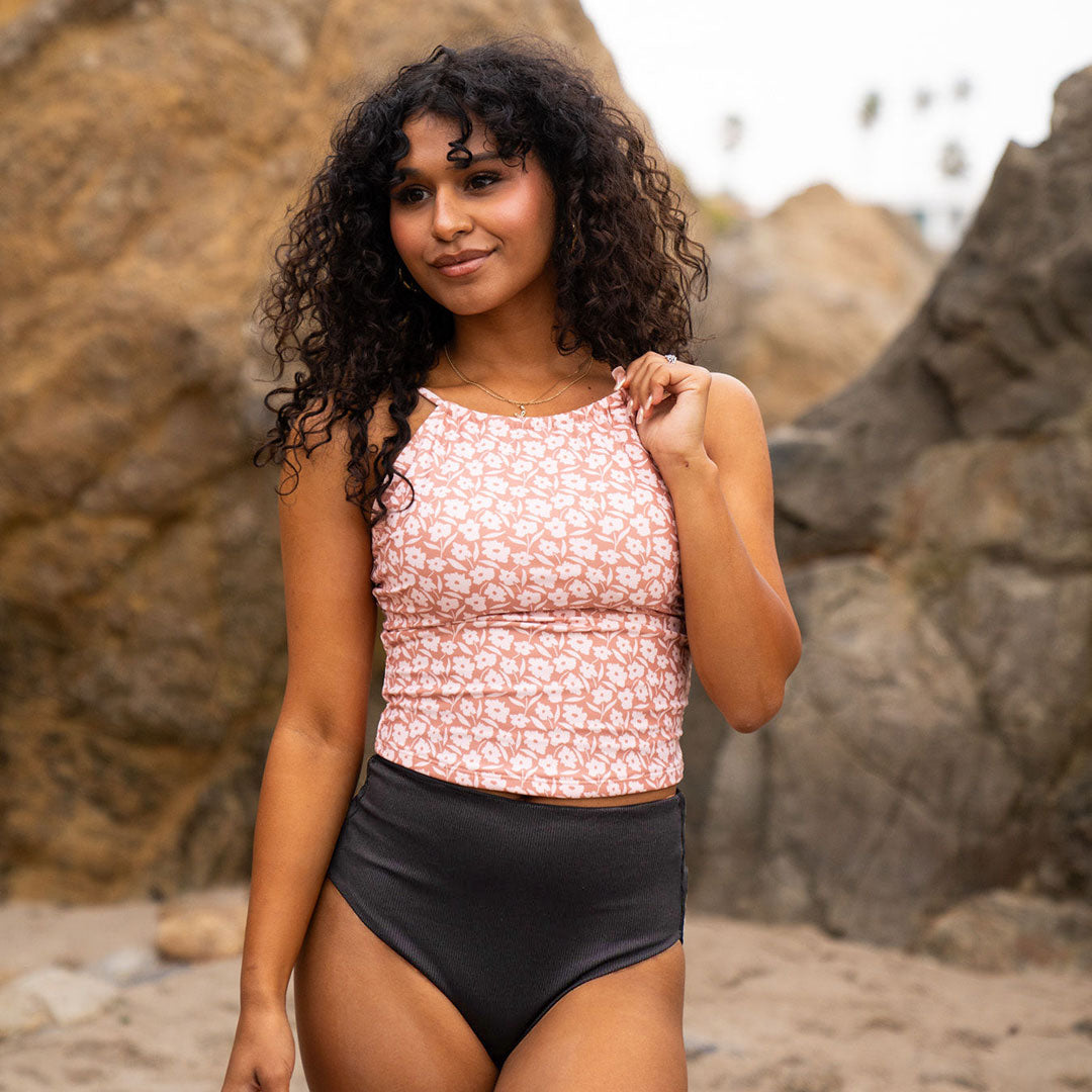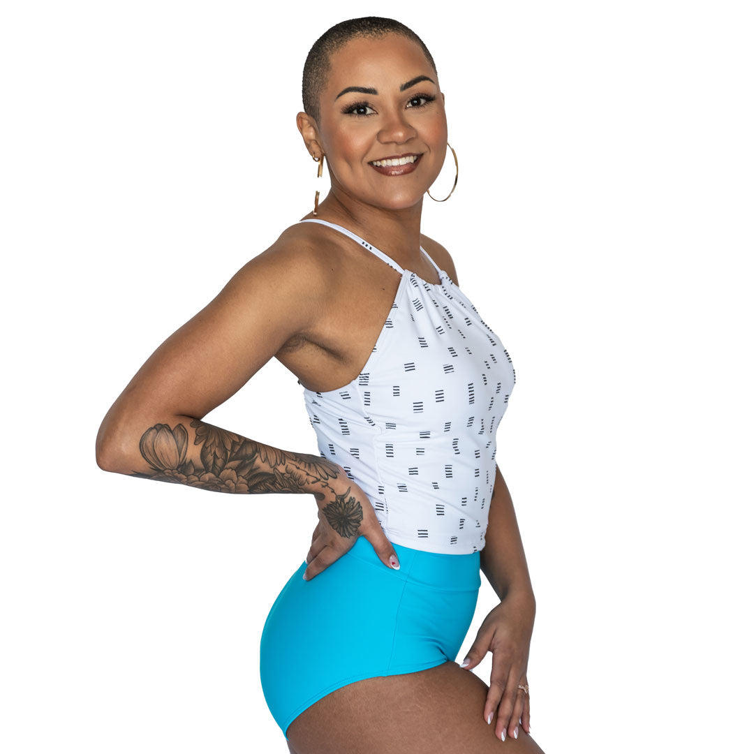 Our High Neck Tankini Top is the perfect blend of style and comfort. With its high neck design and crop length, this top provides coverage and support while still looking chic. Complete your poolside look by pairing it with our high waist swim bottoms.