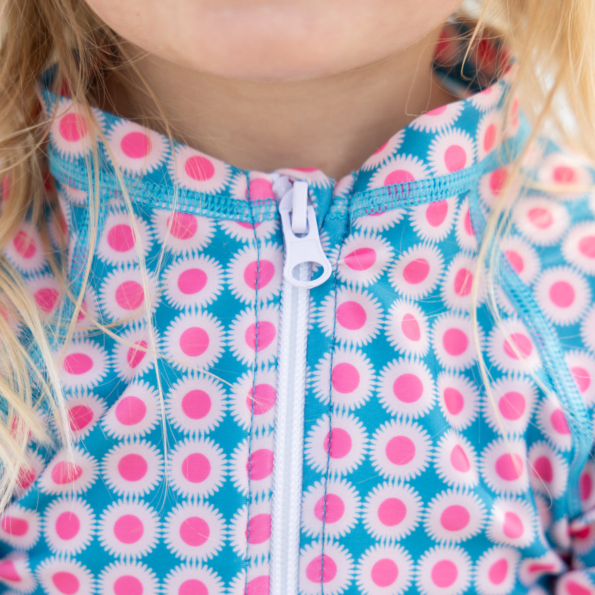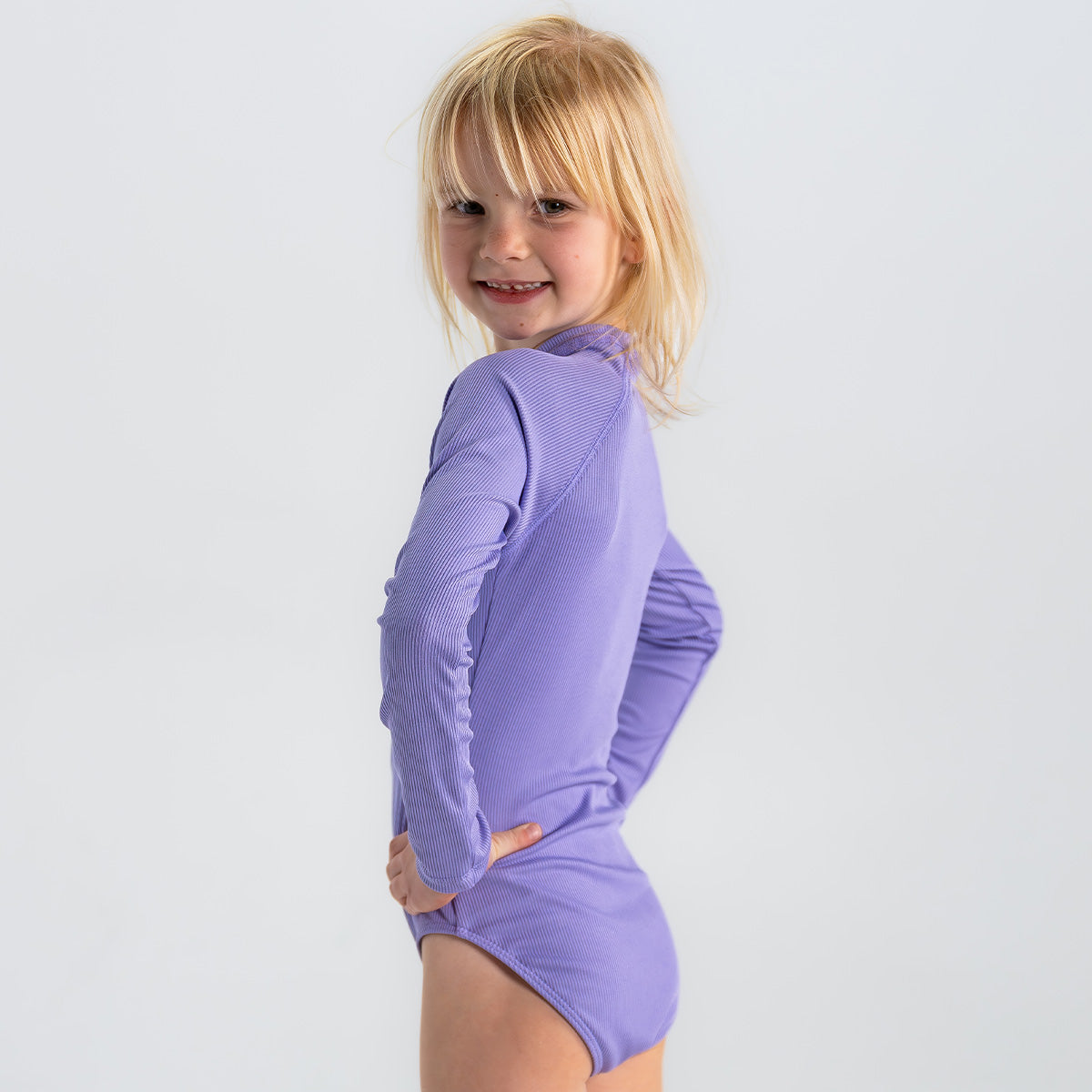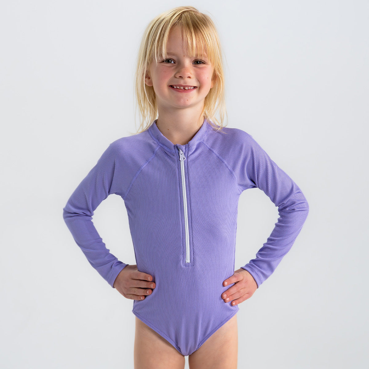 Prepare your little one for sunny adventures with our long sleeve rash guard one-piece swimsuit, designed for both fun and protection! This charming swimsuit features a convenient front zipper for easy on and off, making it perfect for little swimmers eager to dive right in. Crafted with a fully lined front and back, it offers enhanced comfort while allowing for unrestricted movement. The long sleeves provide extra sun protection, and with UPF 50+ fabric, you can have peace of mind knowing she’s shielded from harmful rays during her outdoor play. With full bum coverage, this swimsuit ensures she can splash, swim, and play freely without any worries. This one-piece is sure to become her favorite choice for beach days, pool parties, and summer fun!