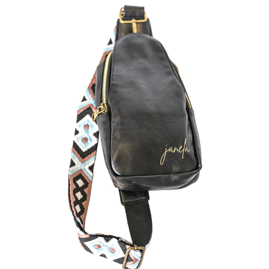 Make your travels easy and convenient with this Travel Sling Bag! Perfectly sized for every journey, this bag securely holds your phone, keys, and credit cards, so you don't have to worry about valuable items getting lost. Crafted from faux leather, this bag is perfect for wherever life takes you!