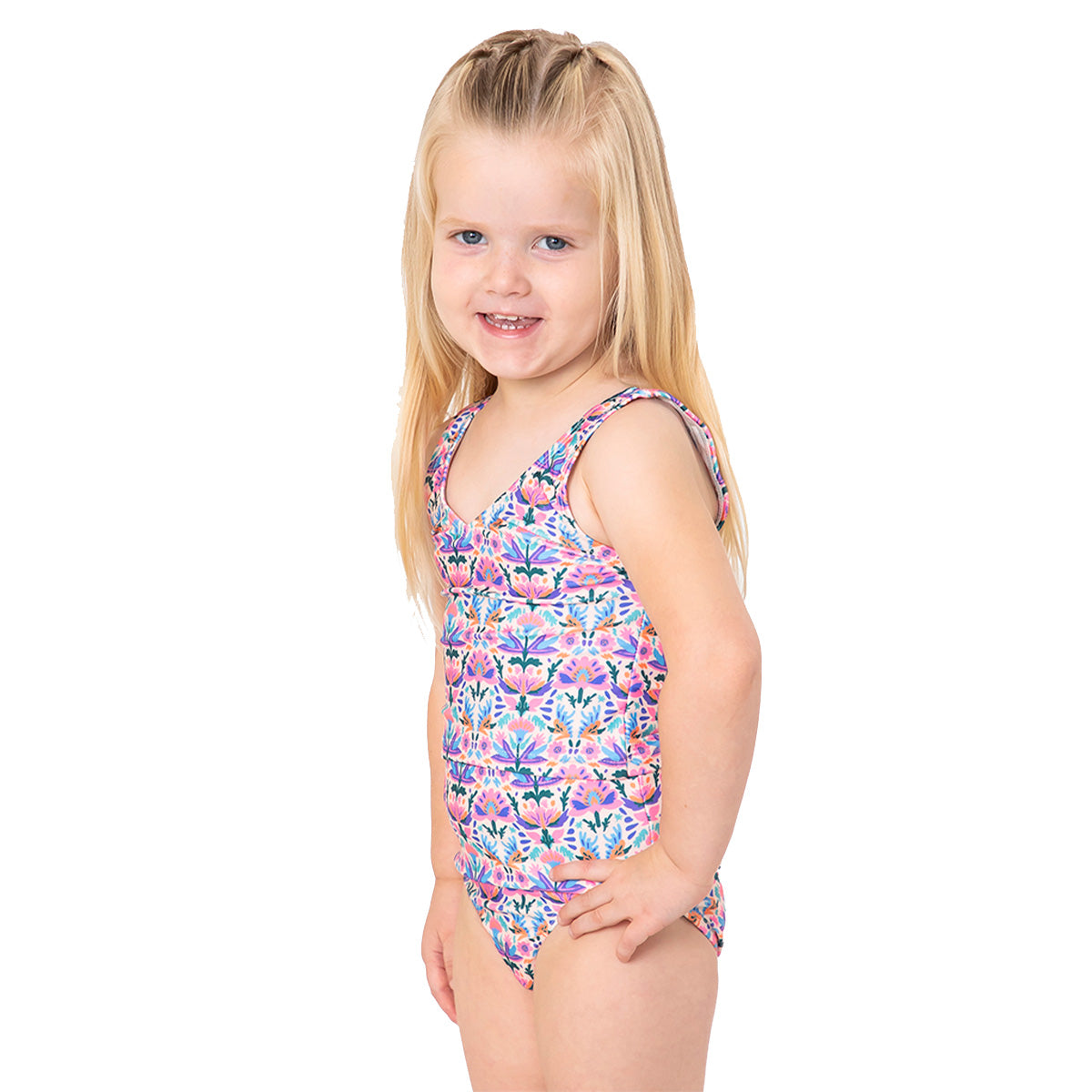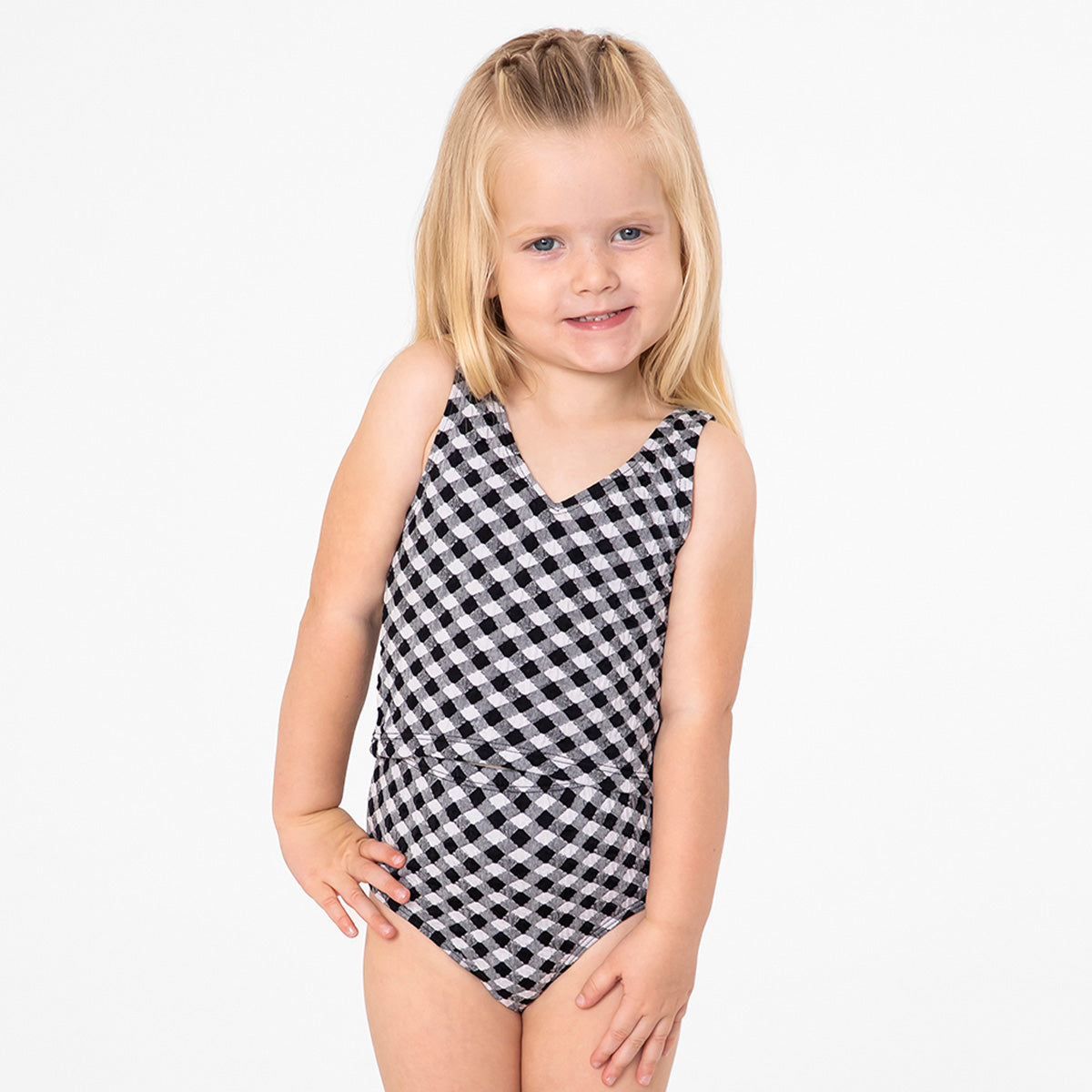 Let your little one shine this summer in our charming tankini top! Featuring a stylish high neck detail on both the front and back, this crop-style design effortlessly blends playful elegance with practical coverage. Fully lined for comfort and confidence, this tankini top ensures a soft feel against the skin, making it perfect for hours of splashing and playing. The trendy crop style allows for easy movement, while the lovely V-neck adds a touch of flair that your little girl will adore. Whether she’s making waves at the beach or enjoying a fun-filled day at the pool, this tankini top will keep her feeling cute and confident. Pair it with our original high waist bottoms for a look that’s both cute and fun!